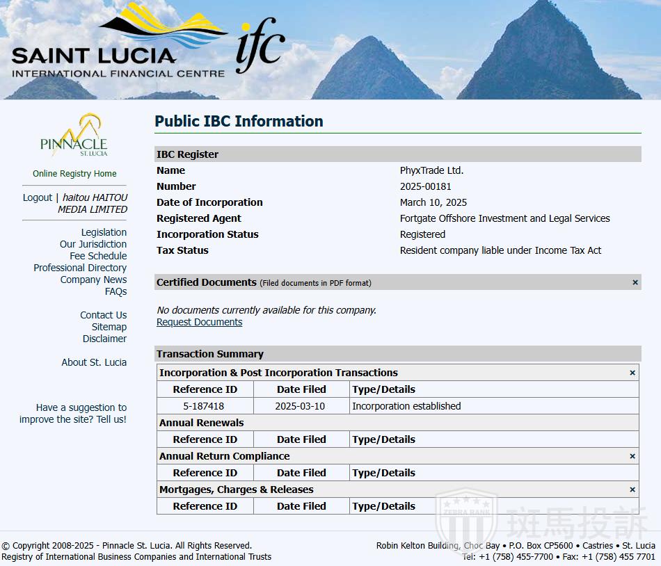 Regulation/License:Registered with the Saint Lucia International Financial Center (IFC). ⚠️ Important note: IFC does not regulate forex or brokerage activities. This means Phyx Trade does not hold a recognized forex trading license.