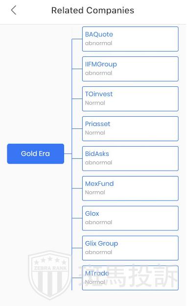 The main white label relationship shows that there are 34 associated brokers on the Gold Era. We need to pay attention to whether the associated brokers are running away. This is the business risk of the brokers and the past business history, which can be used as an important reference condition for selecting brokers. The broker relationship data comes from the data of MetaQuotes.