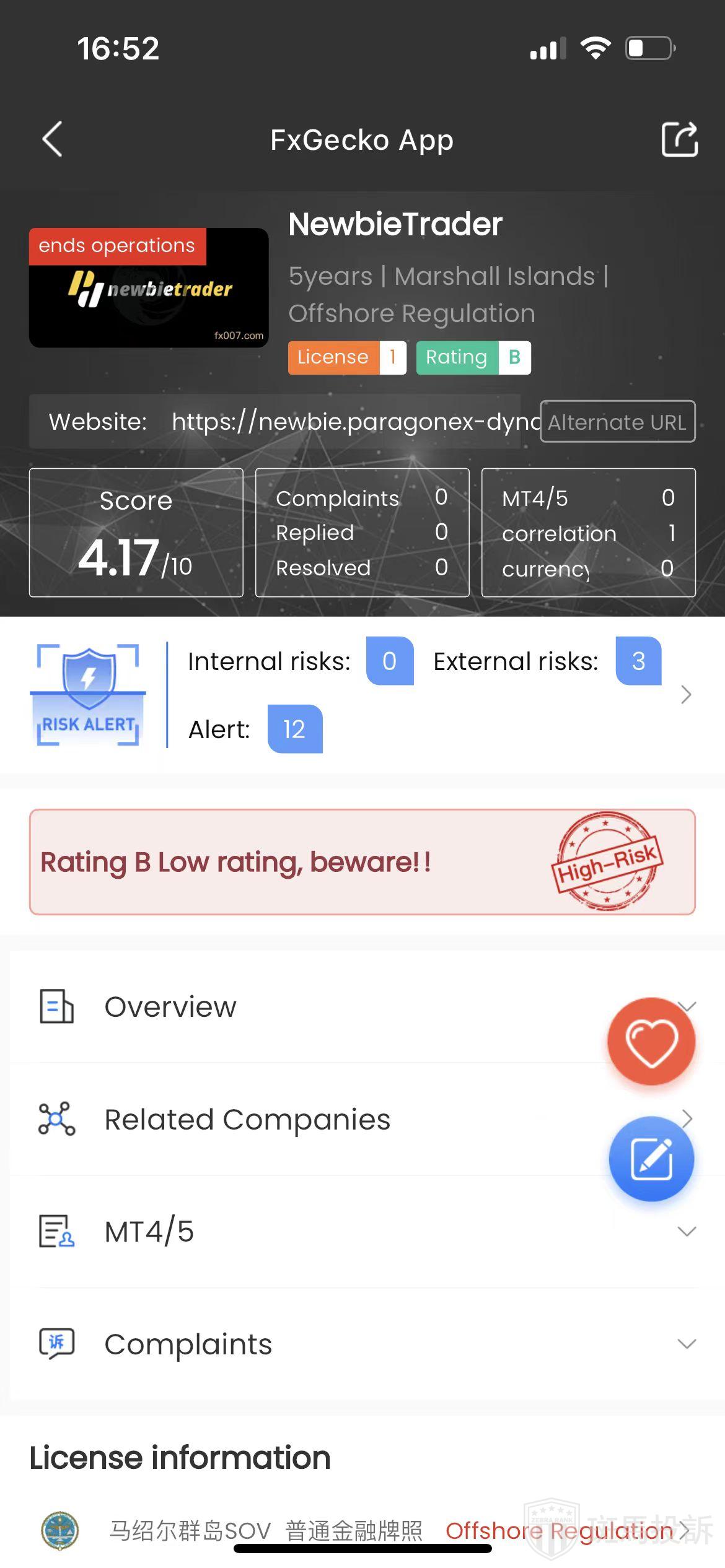 FTI risk warning shows that NewbieTrader has 15 risks. Investors need to pay attention to the relevant risk alerts for this broker.