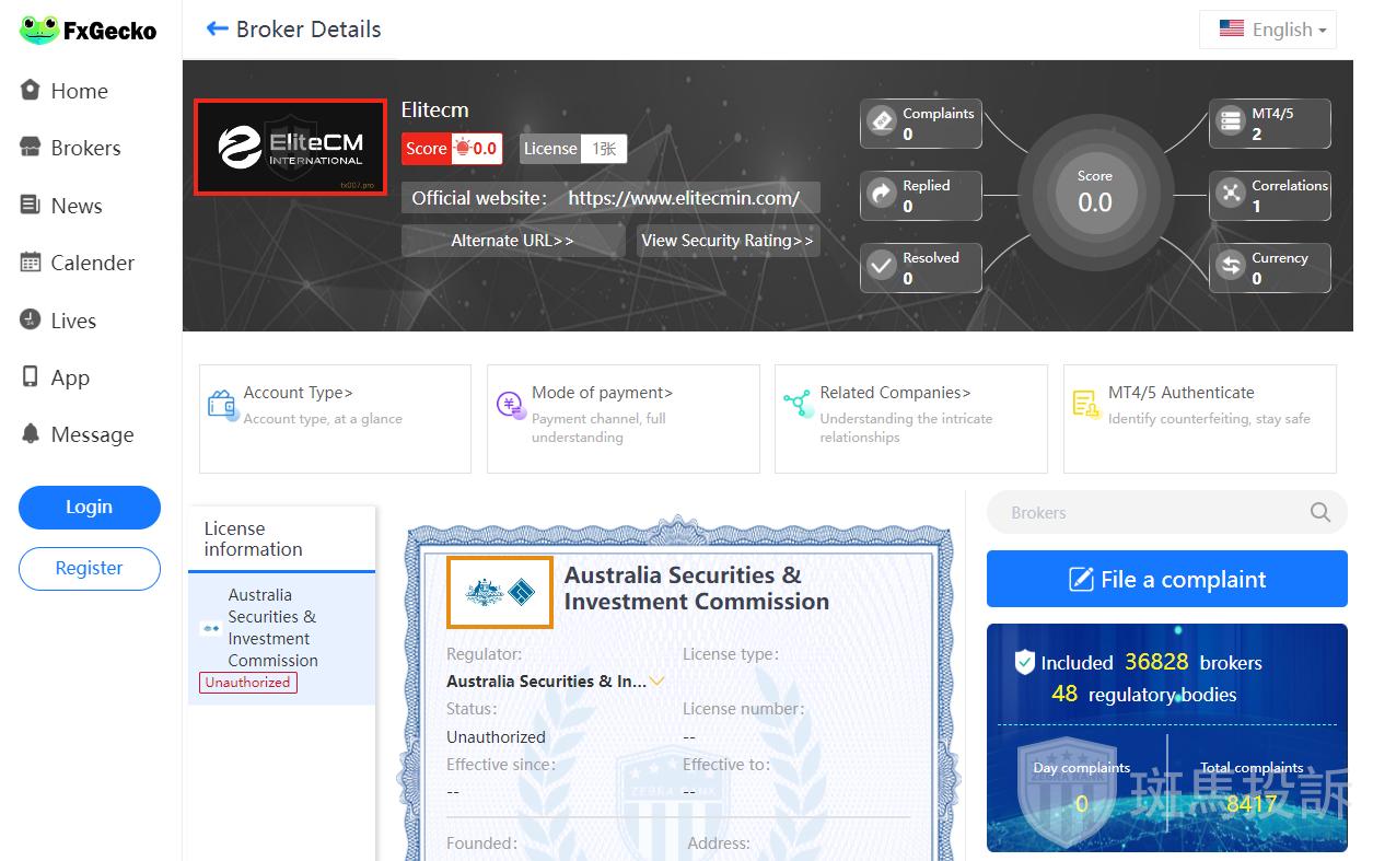 This broker is called Elitecm, which has been established for one year and ranks 5042 in the world. At present, there are 0 foreign exchange licenses, and the risk scan shows 2 risks. Investors need to pay attention to relevant risks.
