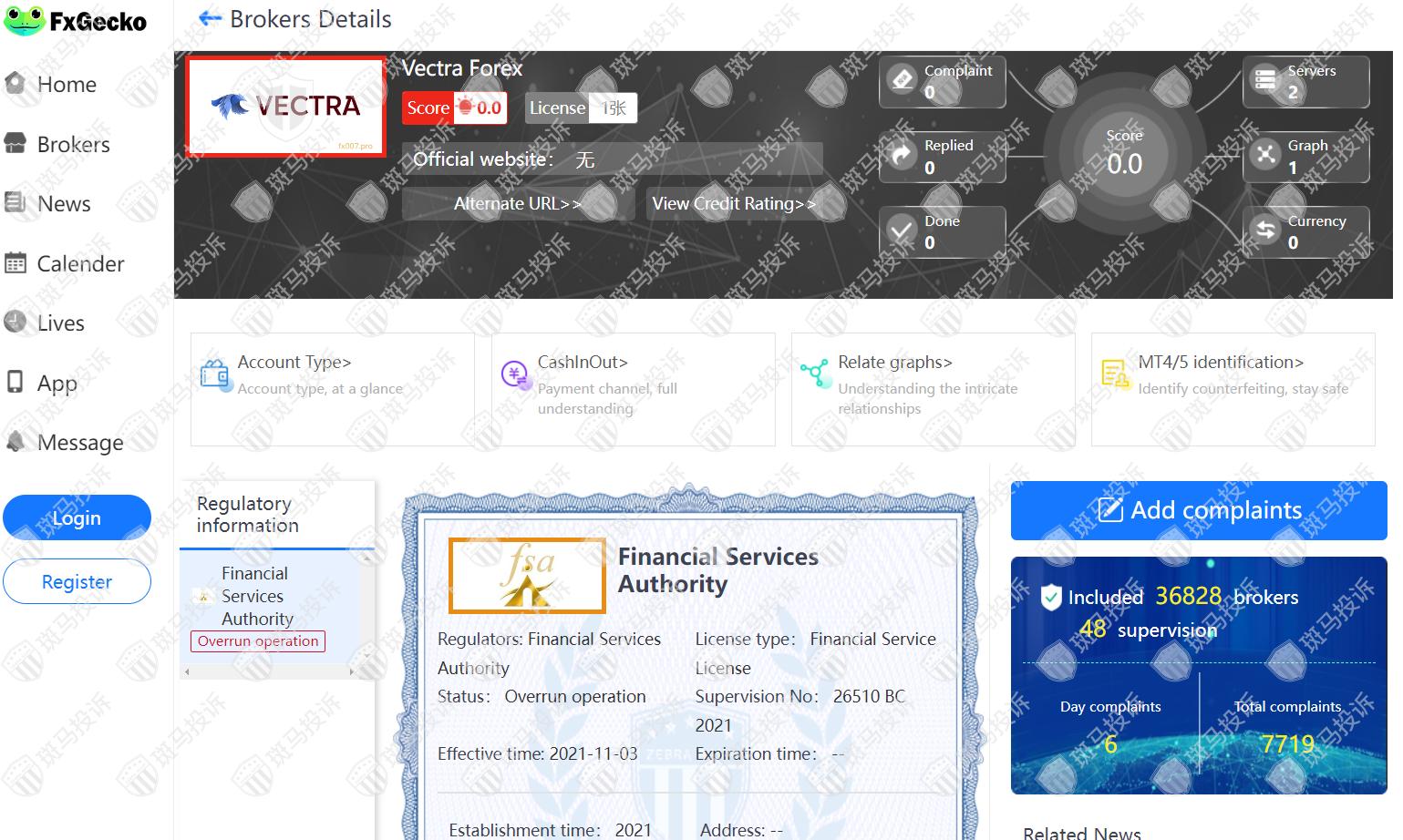 This broker is called Vectra Forex which was founded less than 1 year ago and is ranked 2274 in the world. At present, there are 0 foreign exchange licenses, and the risk scan shows 2 risks. Investors need to pay attention to relevant risks.