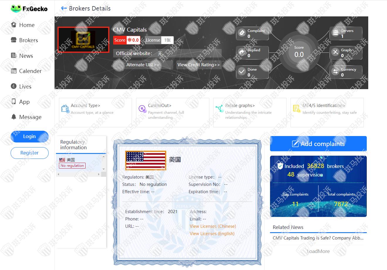 This broker is called CMV Capitals, which has been established for one year and ranks 5565 in the world. At present, there are 0 foreign exchange licenses, and the risk scan shows 1 risks. Investors need to pay attention to relevant risks.