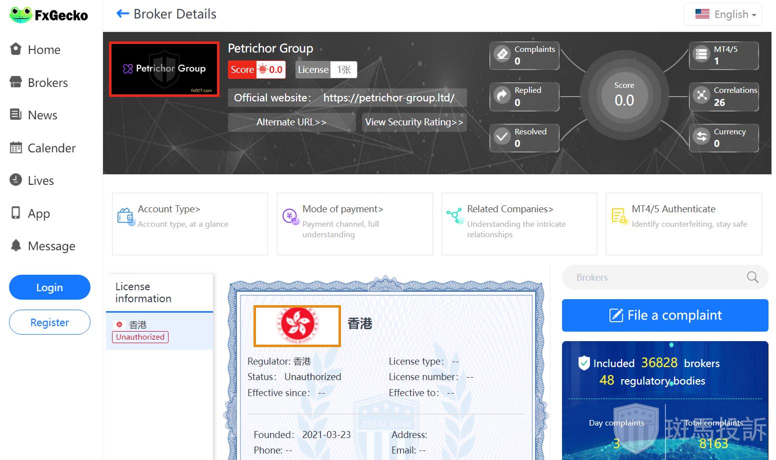 This broker is called Petrichor Group which was founded less than 2 year ago and is ranked 3272 in the world. At present, there are 0 foreign exchange licenses (This is a high risk signal, beware!), and the risk scan shows 16 risks. Investors need to pay attention to relevant risks.