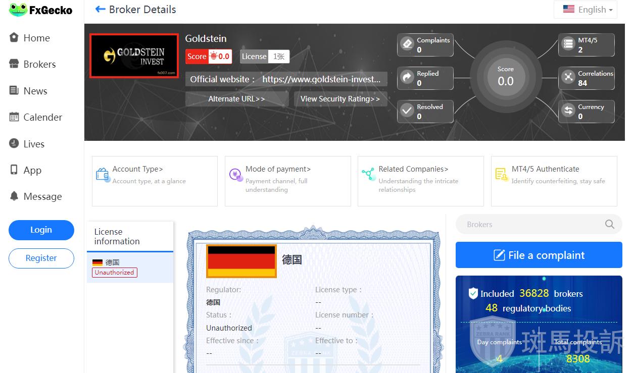 This broker is called Goldstein, which has been established for one year and ranks 2907 in the world. At present, there are 0 foreign exchange licenses, and the risk scan shows 23 risks. Investors need to pay attention to relevant risks.