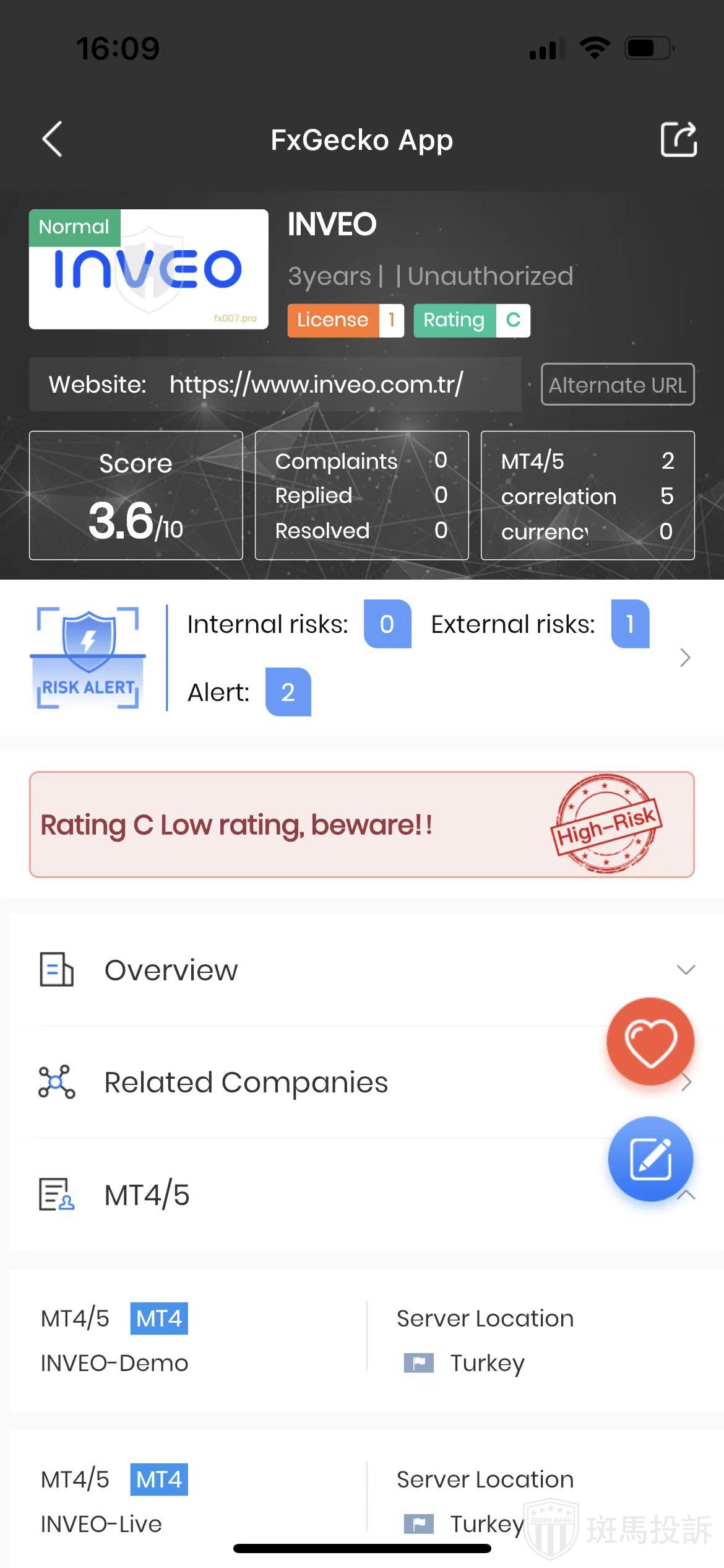 FTI risk warning shows that INVEO has 3 risks. Investors need to pay attention to the relevant risk alerts for this broker.