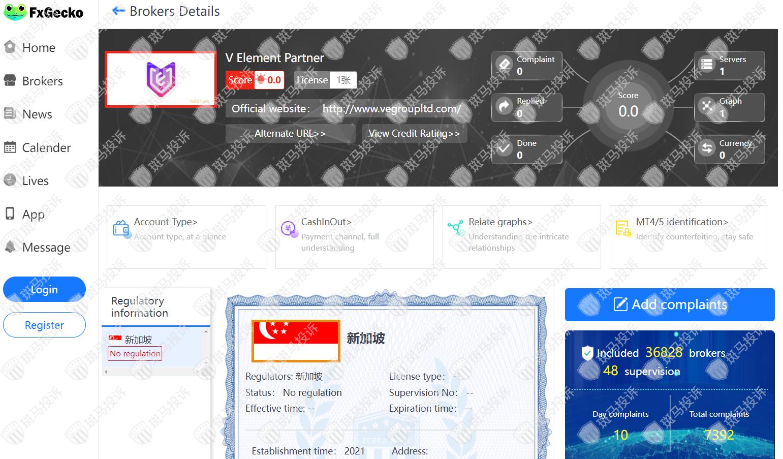This broker is called V Element Partner, which has been established for 1 year and ranks 4435 in the world. At present, there are 0 foreign exchange licenses, and the risk scan shows 4 risks. Investors need to pay attention to relevant risks.