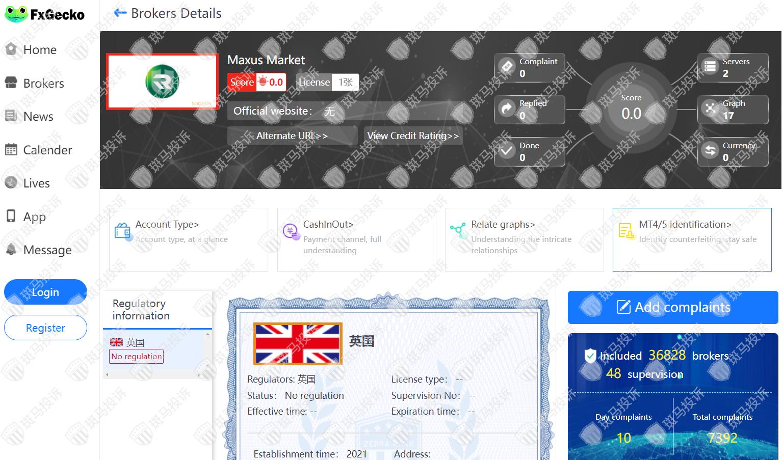 This broker is called Maxus Market, which has been established for 1 year and ranks 3414 in the world. At present, there are 0 foreign exchange licenses, and the risk scan shows 2 risks. Investors need to pay attention to relevant risks.