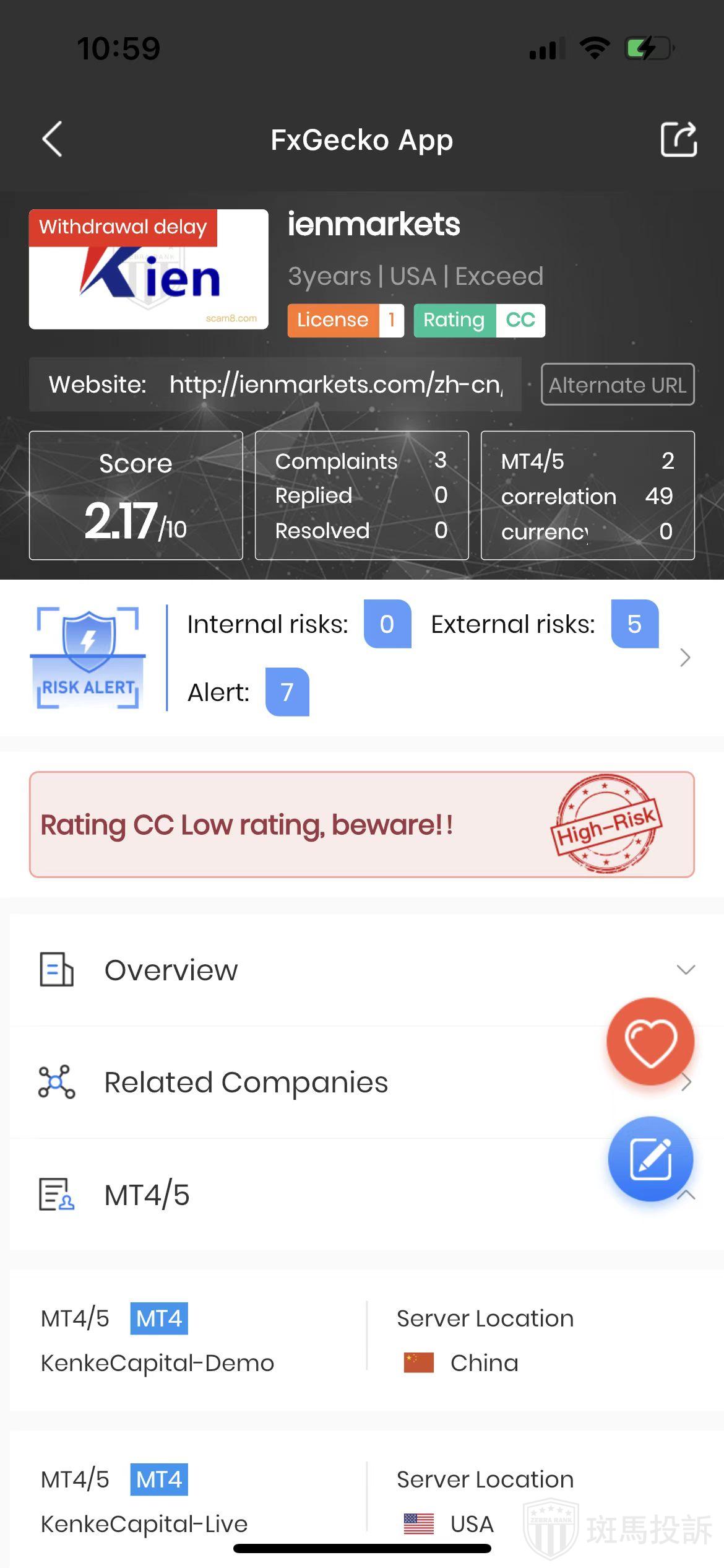 This broker is called ienmarkets, which has been established for one year and ranks 1811 in the world. At present, there are 1 foreign exchange licenses, and the risk scan shows 12 risks. Investors need to pay attention to relevant risks.
