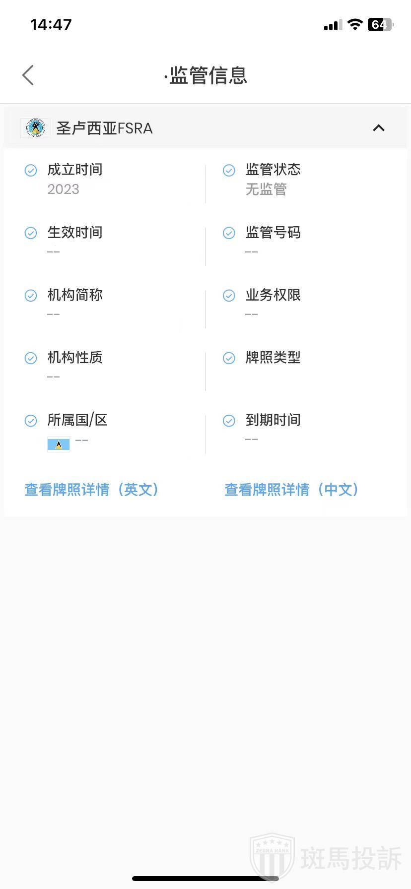 EKAAdisplays regulatory information for one company in FTI. The regulatory status of the Saint Lucia FSRA held is unregulated. The safety of investor funds is not guaranteed!