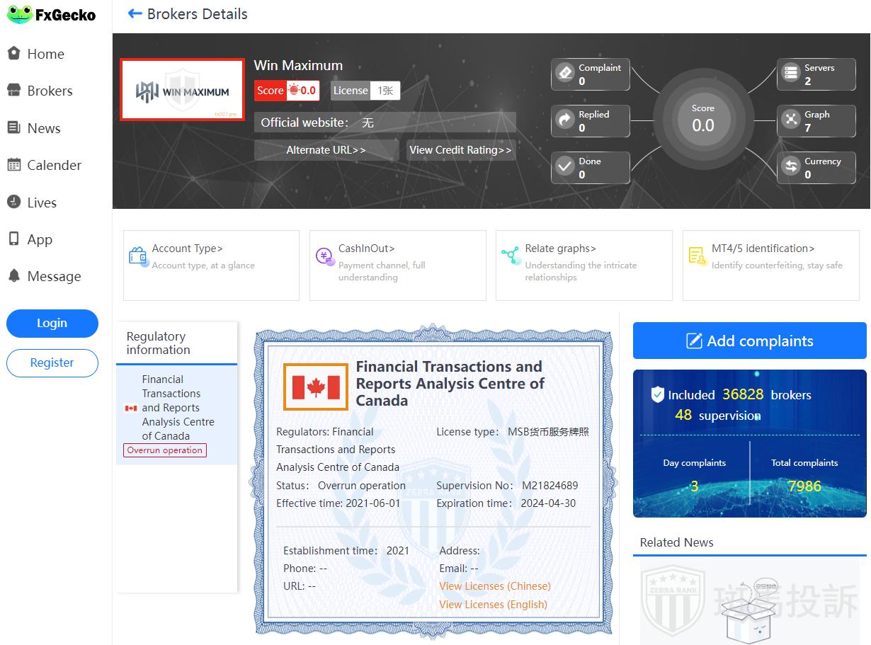This broker is called Win Maximum, which has been established for one year and ranks 1639 in the world. At present, there are 1 foreign exchange licenses, and the risk scan shows 3 risks. Investors need to pay attention to relevant risks.
