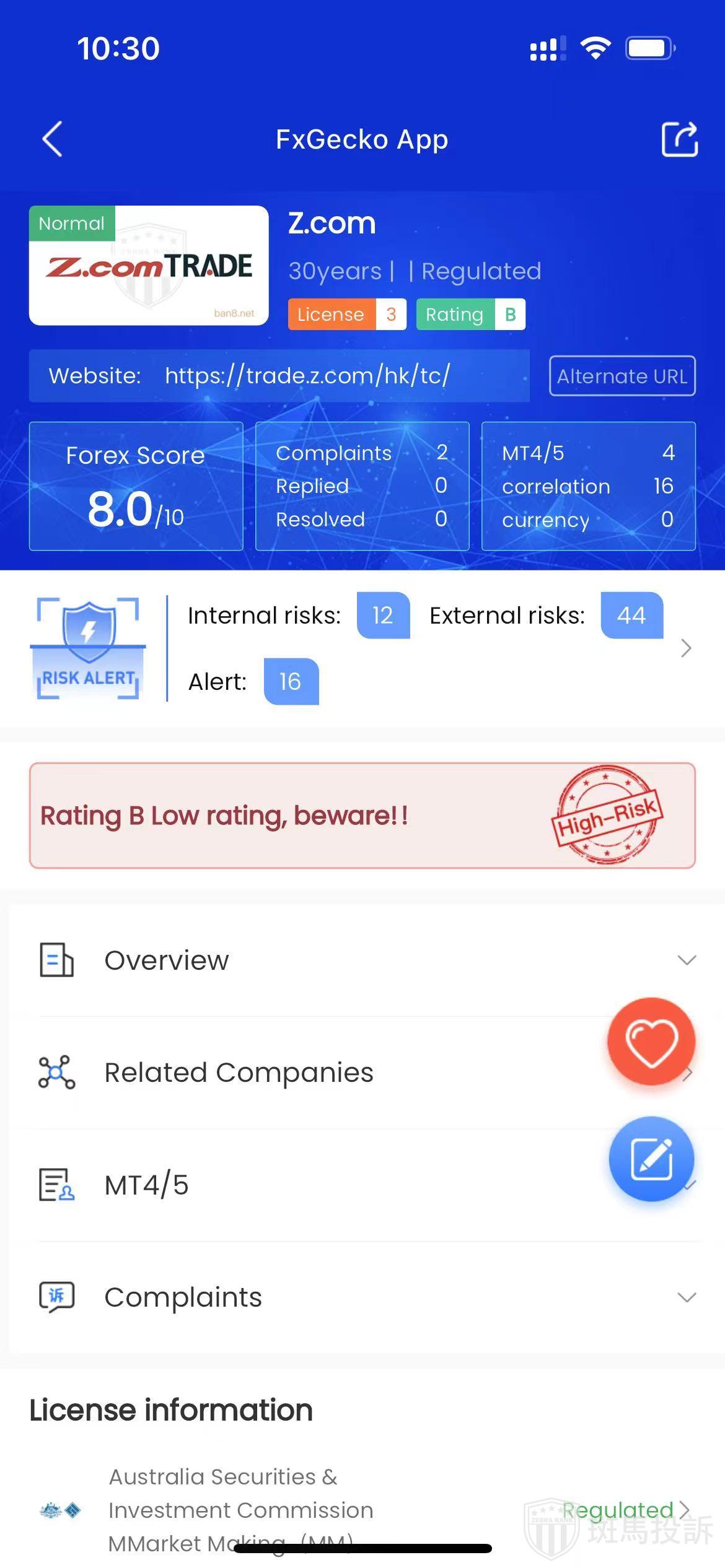 Based on the above information, we can conclude that Z.com is regulated by the SFC in Hong Kong, providing a relatively secure regulatory setting. Nevertheless, due to the lack of additional third-party assessments, investors should further investigate the platform's actual operations and service quality before committing.