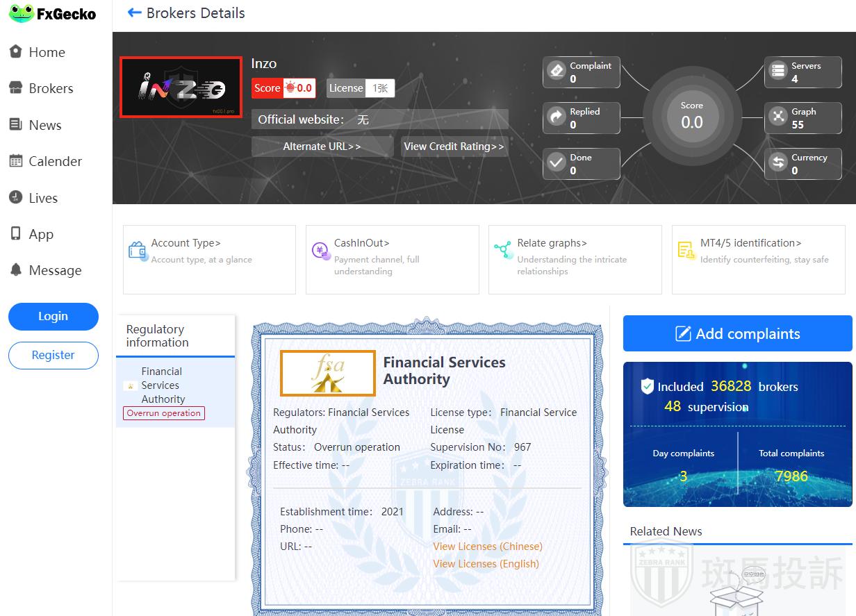 This broker is called Inzo, which has been established for one year and ranks 1935 in the world. At present, there are 1 foreign exchange licenses, and the risk scan shows 16 risks. Investors need to pay attention to relevant risks.