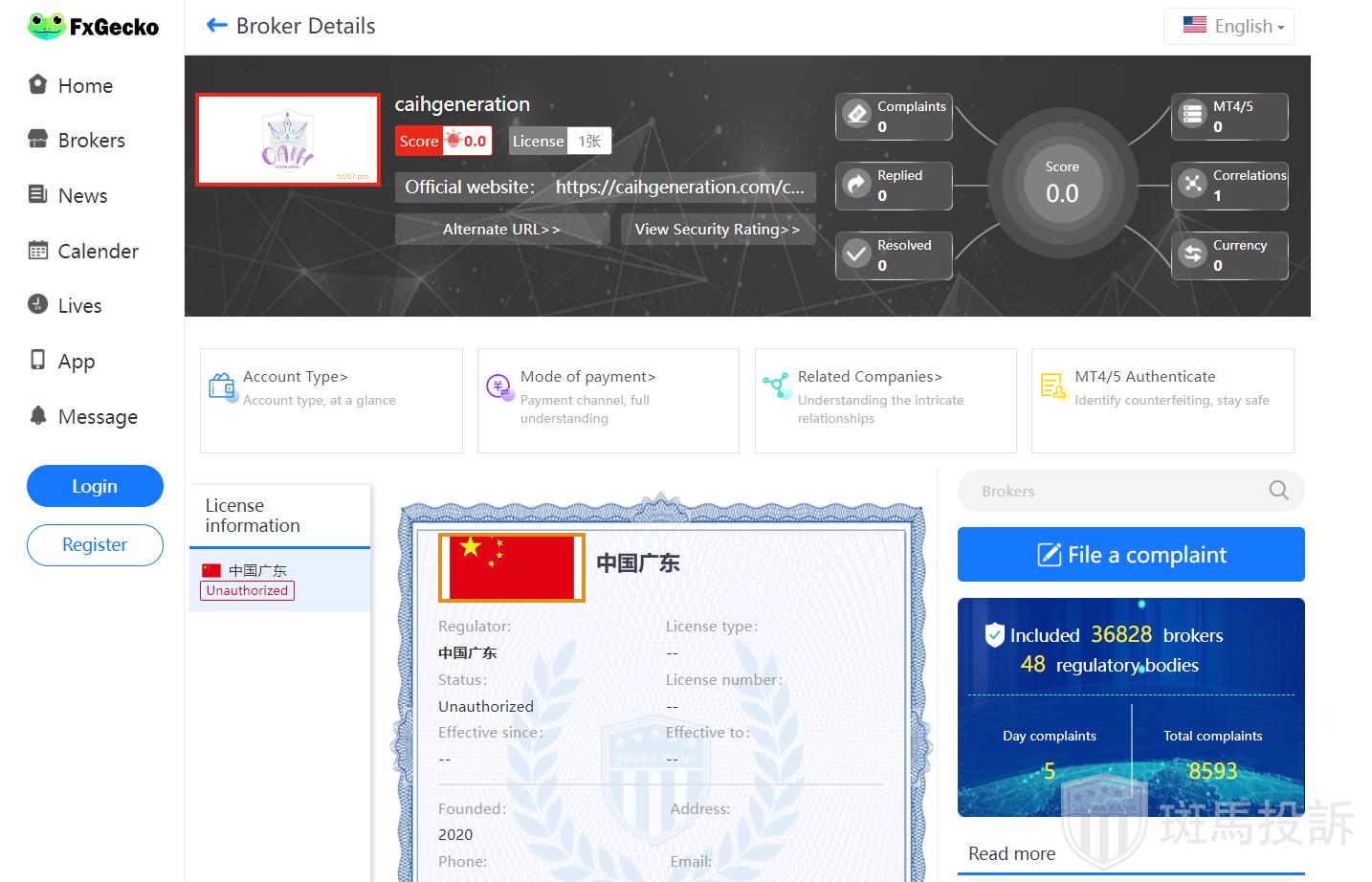 FTI risk warning shows that caihgeneration has 2 risks. Investors need to pay attention to the relevant risk alerts for this broker.