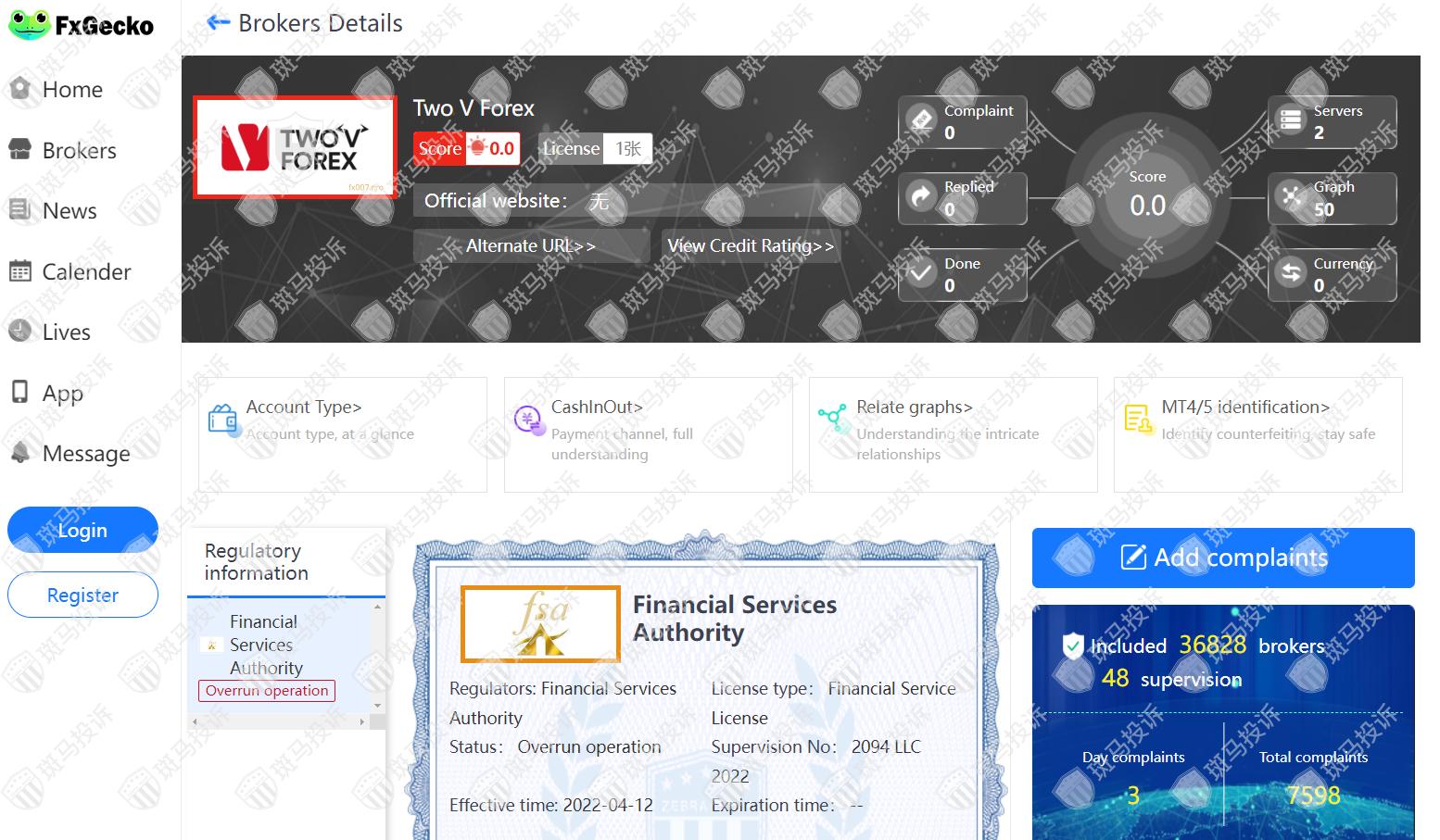 This broker is called Two V Forex which was founded less than 1 year ago and is ranked 2175 in the world. At present, there are 0 foreign exchange licenses, and the risk scan shows 2 risks. Investors need to pay attention to relevant risks.
