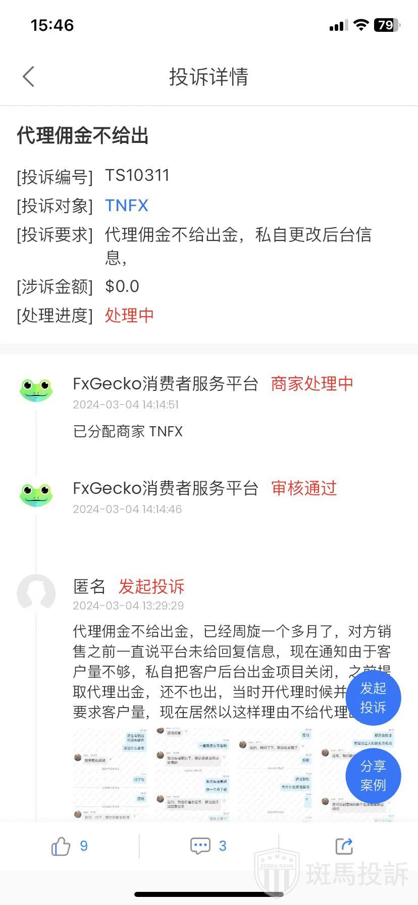 FTI APP received a complaint that the TNFX agent commission on the exposed black platform was not provided.