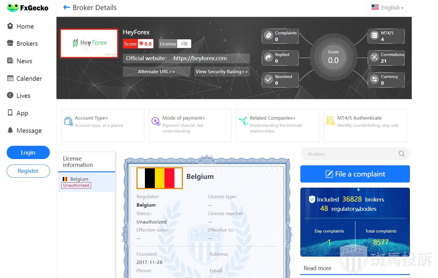 The master white label relationship shows that HeyForex has 21 associated brokers. You need to pay attention to whether the associated brokers are running away. This is the business risk of the brokers and the past business history, which can be used as an important reference condition for selecting brokers. The broker relationship data comes from the data of MetaQuotes.