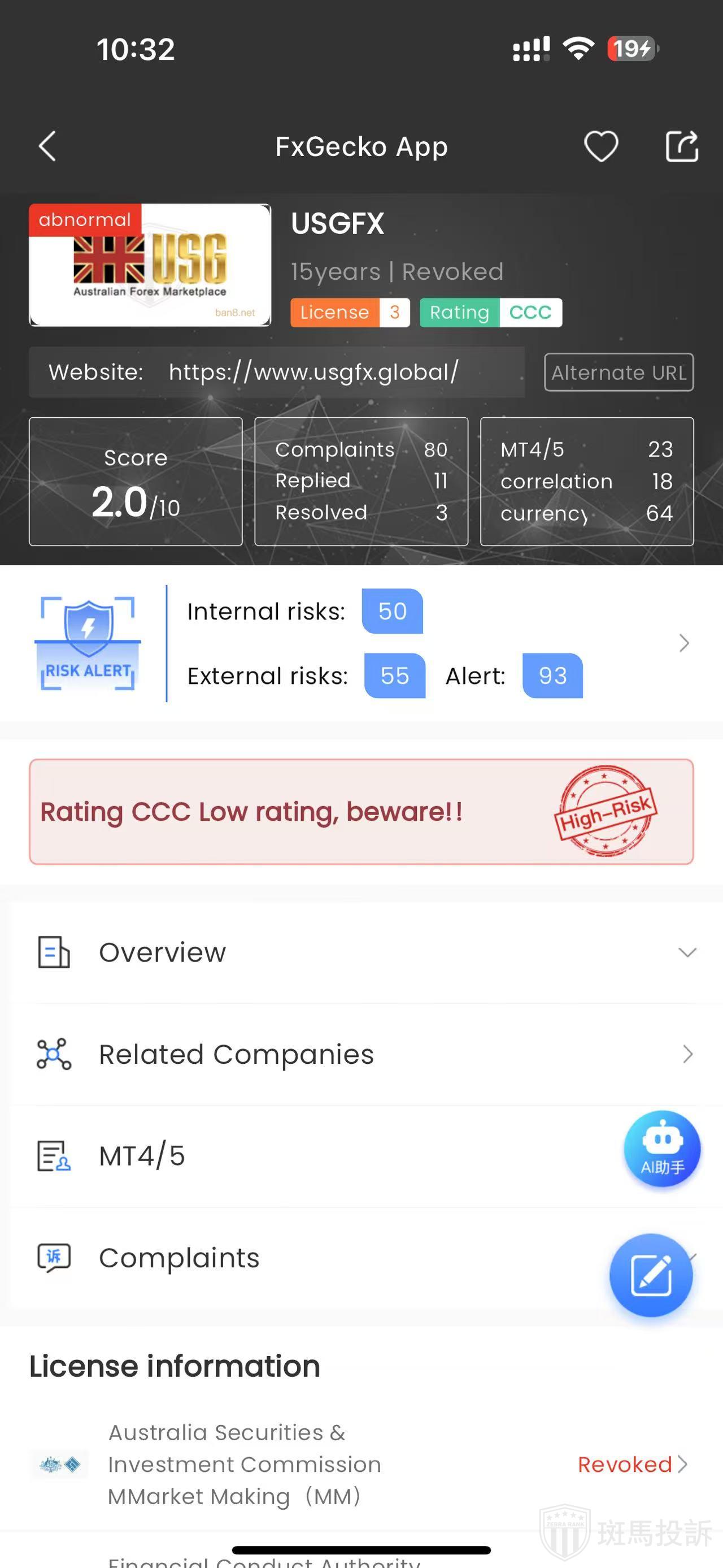 5. **Regulatory Issues**: The Australian Securities and Investments Commission (ASIC) has filed significant charges against USGFX, including freezing assets under two authorized representatives of USGFX and issuing travel bans for relevant directors.