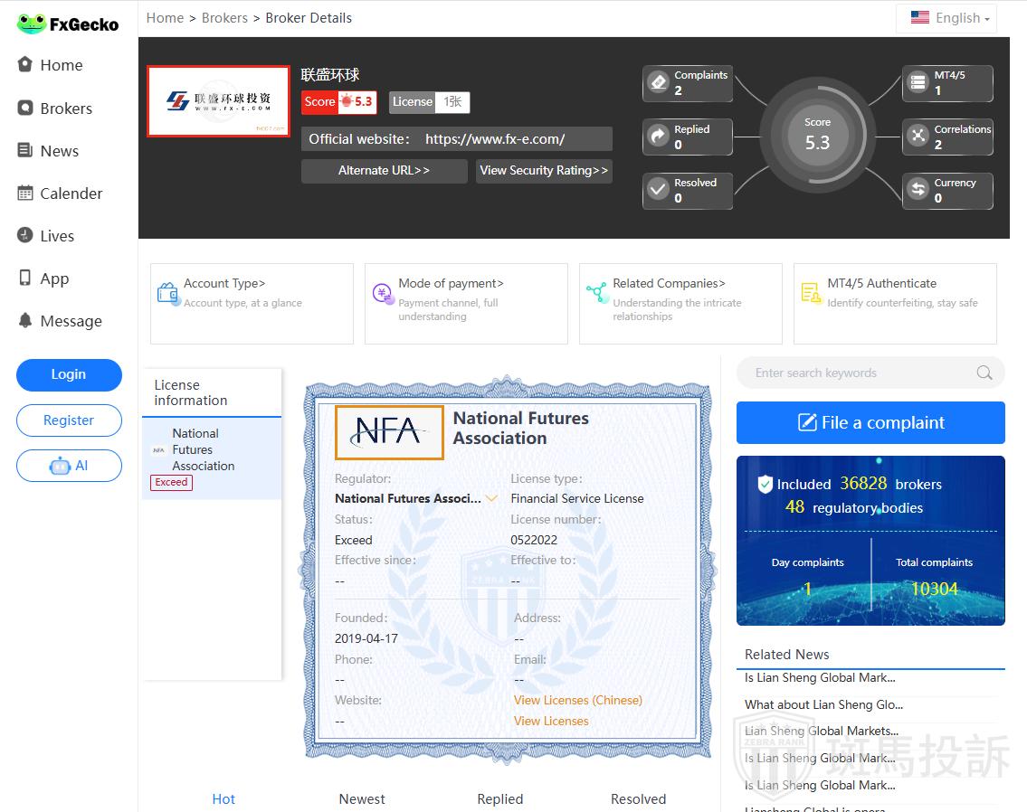 1. Regulatory qualification:Lian Sheng Global Markets Limited claims to have the qualification of NFA, the authoritative regulator in the industry, and the licence number is 0522022.