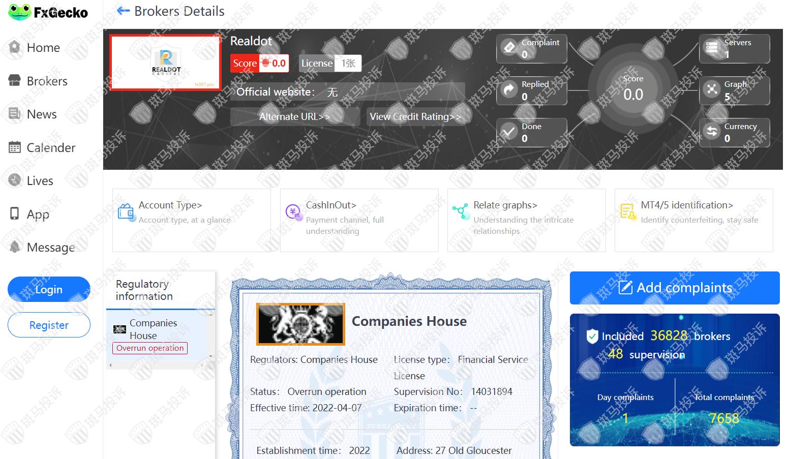 This broker is called Realdot which was founded less than 1 year ago and is ranked 2323 in the world. At present, there are 0 foreign exchange licenses, and the risk scan shows 1 risk. Investors need to pay attention to relevant risks.