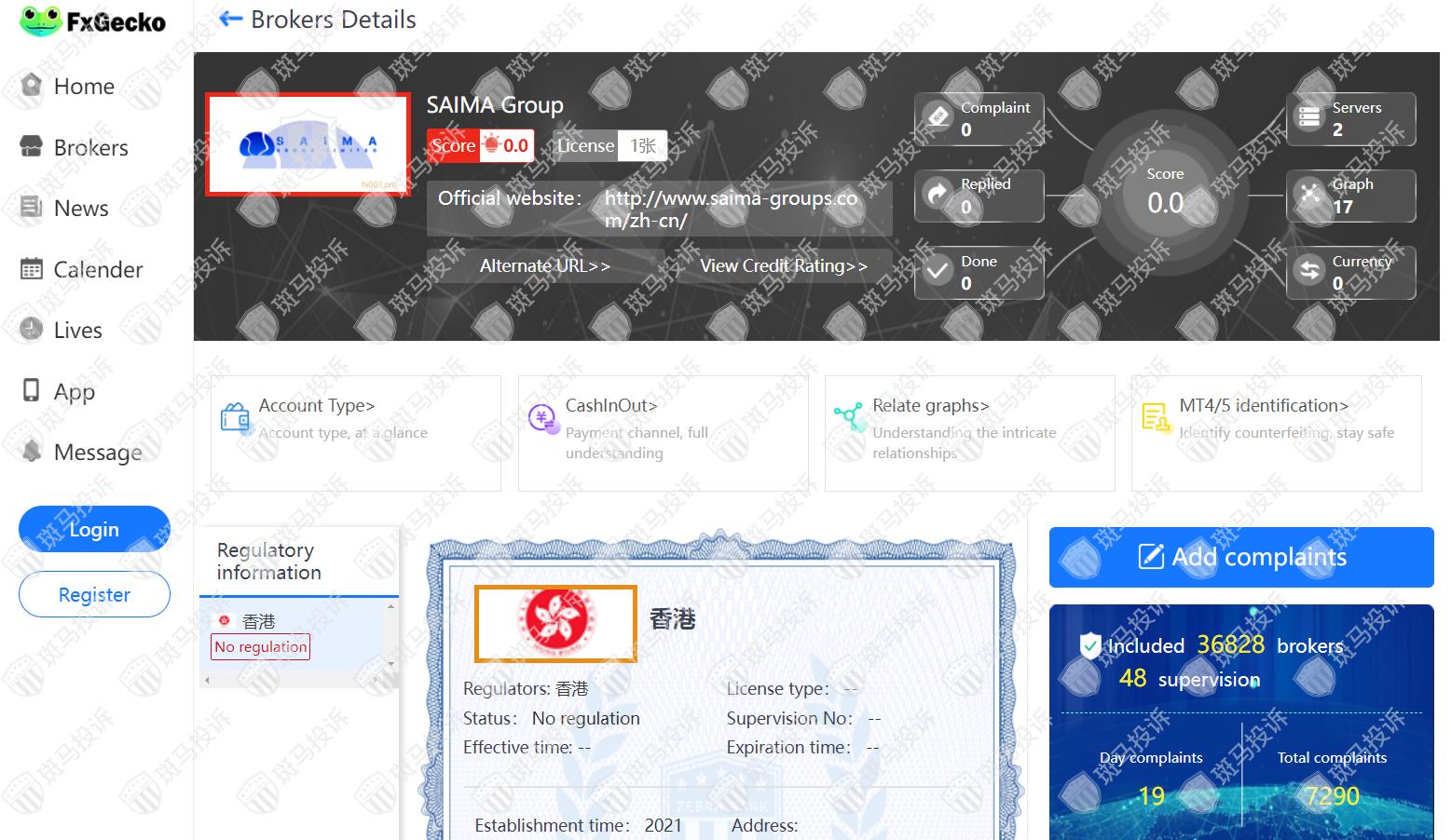 This broker is called SAIMA Group, which has been established for 1 year and ranks 4391 in the world. At present, there are 0 foreign exchange licenses, and the risk scan shows 1 risks. Investors need to pay attention to relevant risks.