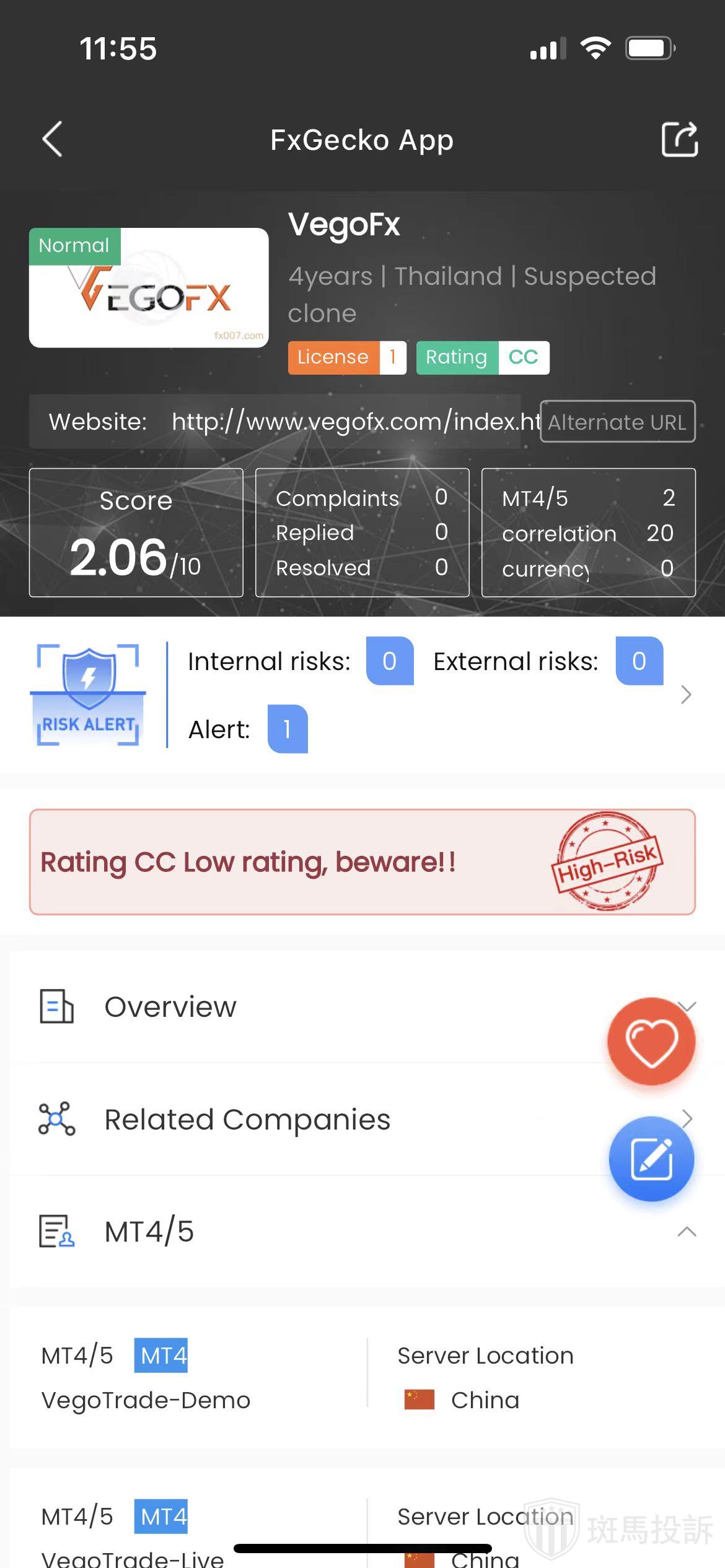 FTI risk warning shows that VegoFx has 1 risks. Investors need to pay attention to the relevant risk alerts for this broker.
