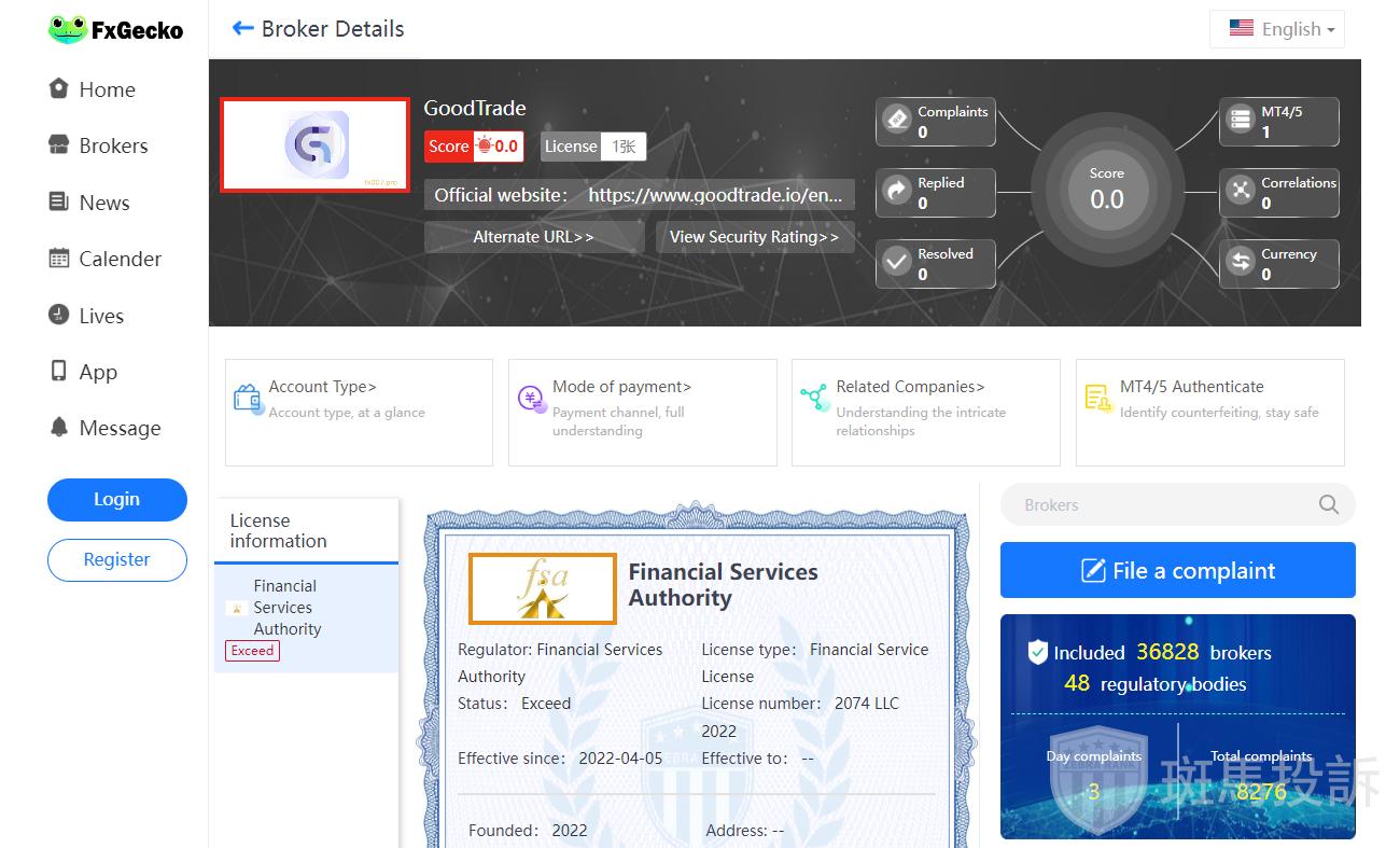 This broker is called GoodTrade, which has been established for one year and ranks 2460 in the world. At present, there are 1 exchange license, and the risk scan shows 2 risks. Investors need to pay attention to relevant risks.