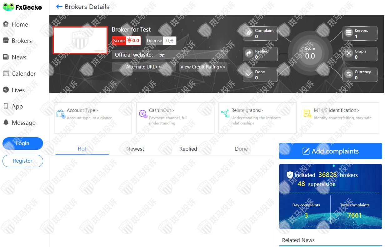 This broker is called Broker for Test, which has been established for one year and ranks 5883 in the world. At present, there are 0 foreign exchange licenses, and the risk scan shows 0 risks. Investors need to pay attention to relevant risks.