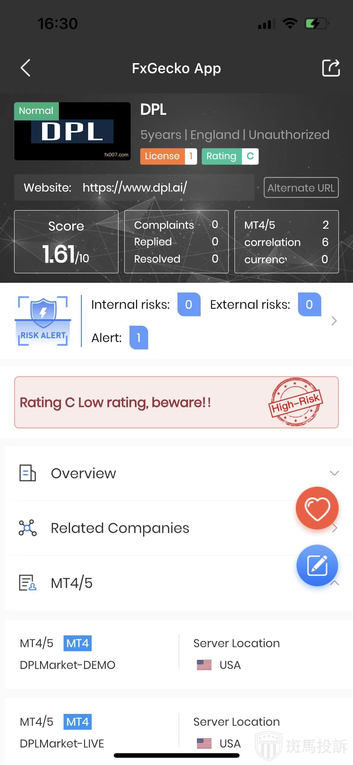 FTI risk warning shows that DPL has 1 risks. Investors need to pay attention to the relevant risk alerts for this broker.