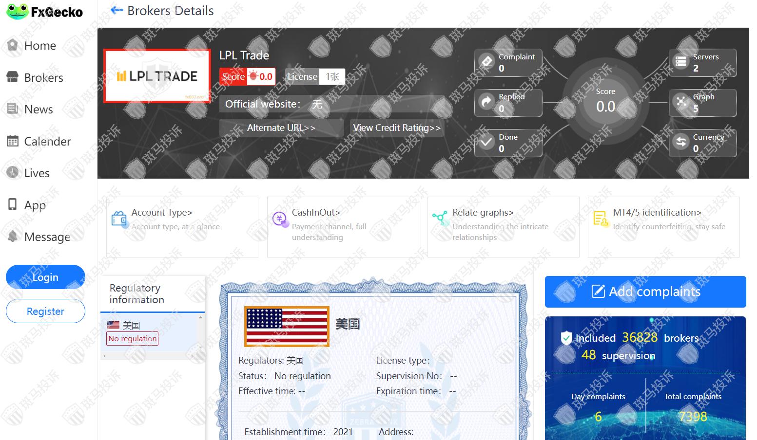 This broker is called LPL Trade, which has been established for 1 year and ranks 3320 in the world. At present, there are 0 foreign exchange licenses, and the risk scan shows 20 risks. Investors need to pay attention to relevant risks.