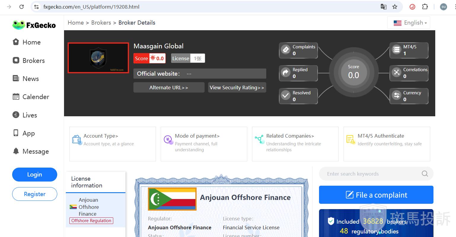 FTI risk warning shows that Maasgain Global has 1 risks. Investors need to pay attention to the relevant risk alerts for this broker.