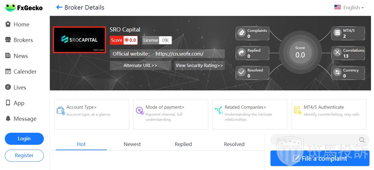FTI risk warning shows that SRO Capital has 17 risks. Investors need to pay attention to the relevant risk alerts for this broker.