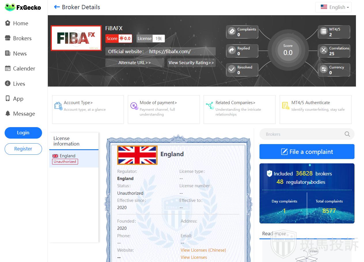 Currently, no valid regulatory information has been found for FiBAFX, which is a high risk sign, beware!