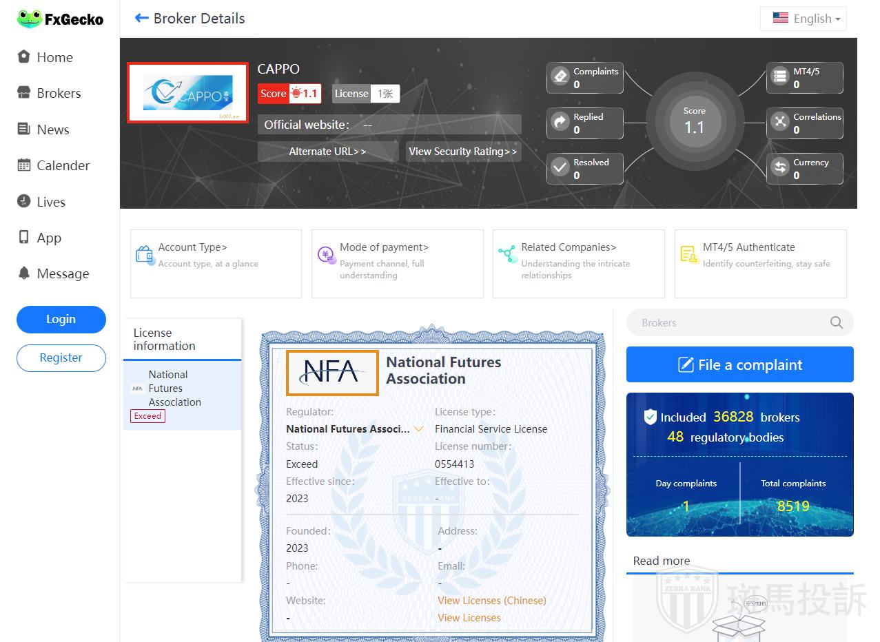 CAPPO platform is regulated by the U.S. NFA, regulatory certificate number is 0554413, to obtain a financial services license, which is the scope of over-the-limit operation.