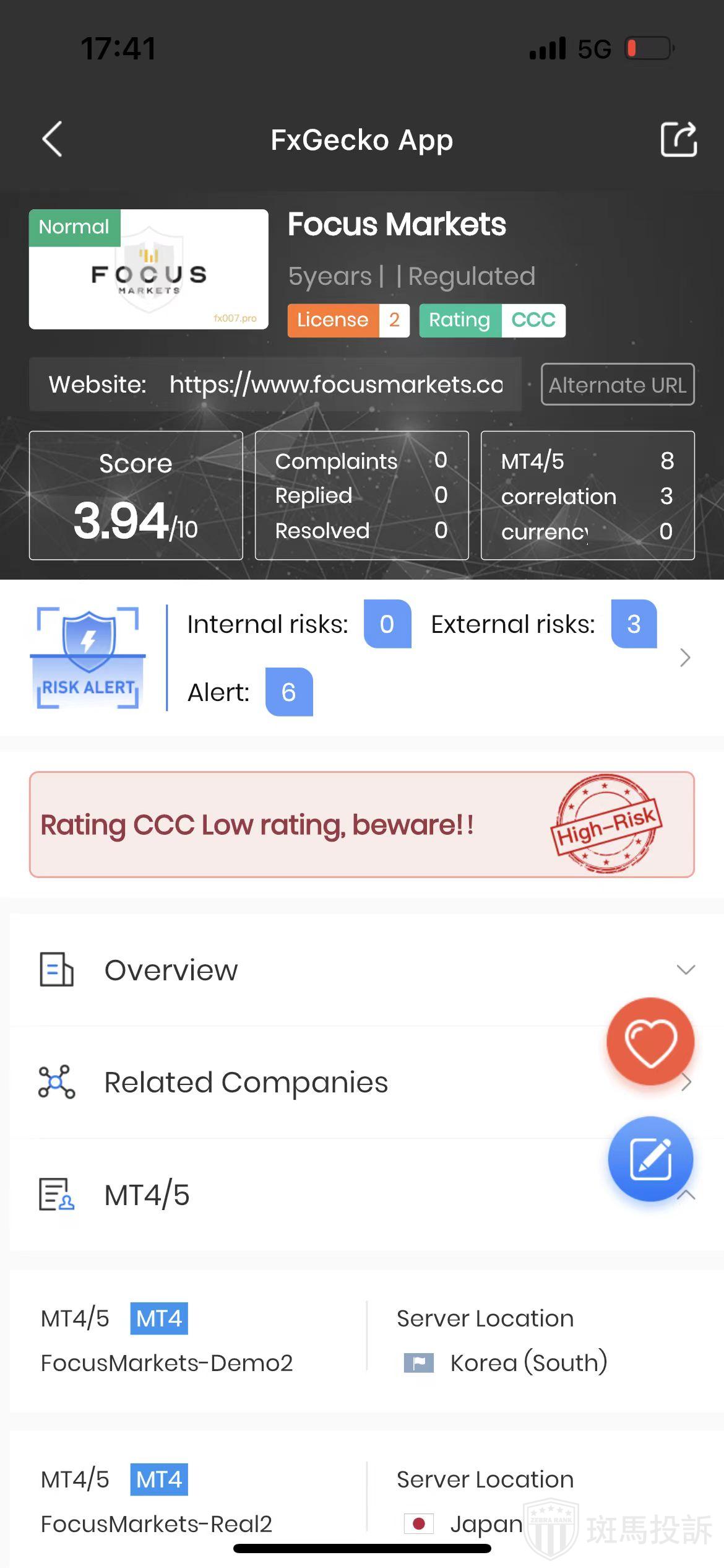 FTI risk warning shows that Focus Markets has 9 risks. Investors need to pay attention to the relevant risk alerts for this broker.