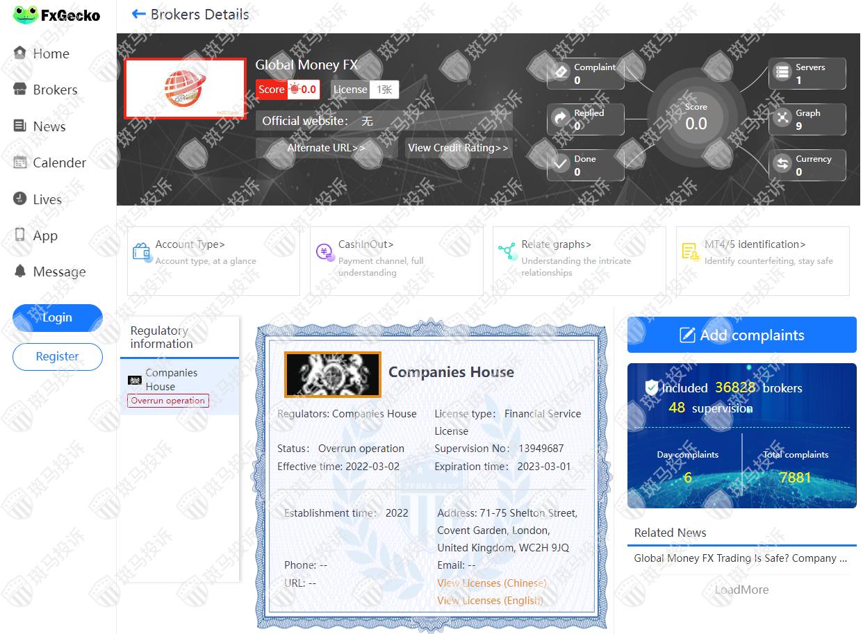This broker is called Global Money FX, which has been established for one year and ranks 2524 in the world. At present, there are 1 foreign exchange licenses, and the risk scan shows 2 risks. Investors need to pay attention to relevant risks.