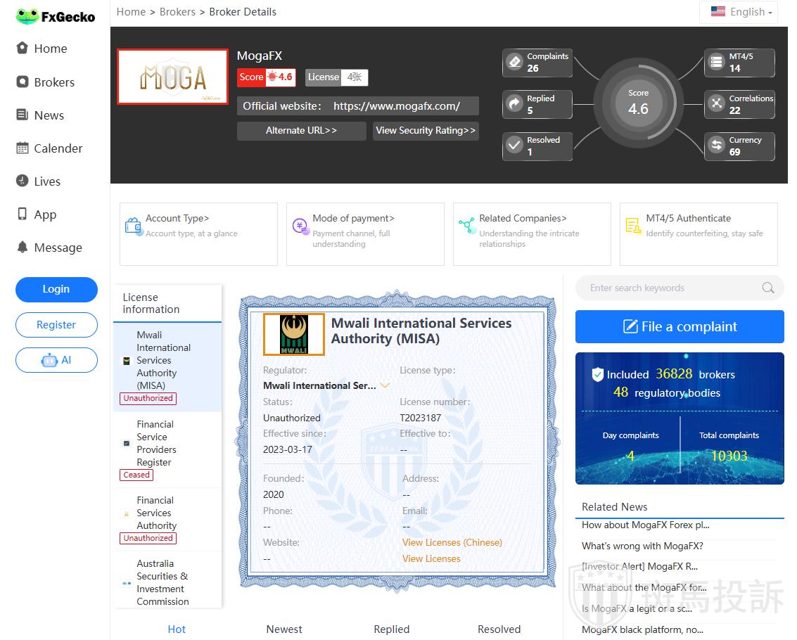 Regulatory fraud:MogaFX has been accused of regulatory fraud, although it claims to be regulated by Australia's ASIC, the actual regulatory status of the other three regulators (St. Vincent's FSA, New Zealand's FSP, and Mwali's MISA) is doubtful, and the platform may be in a state of non-regulation.