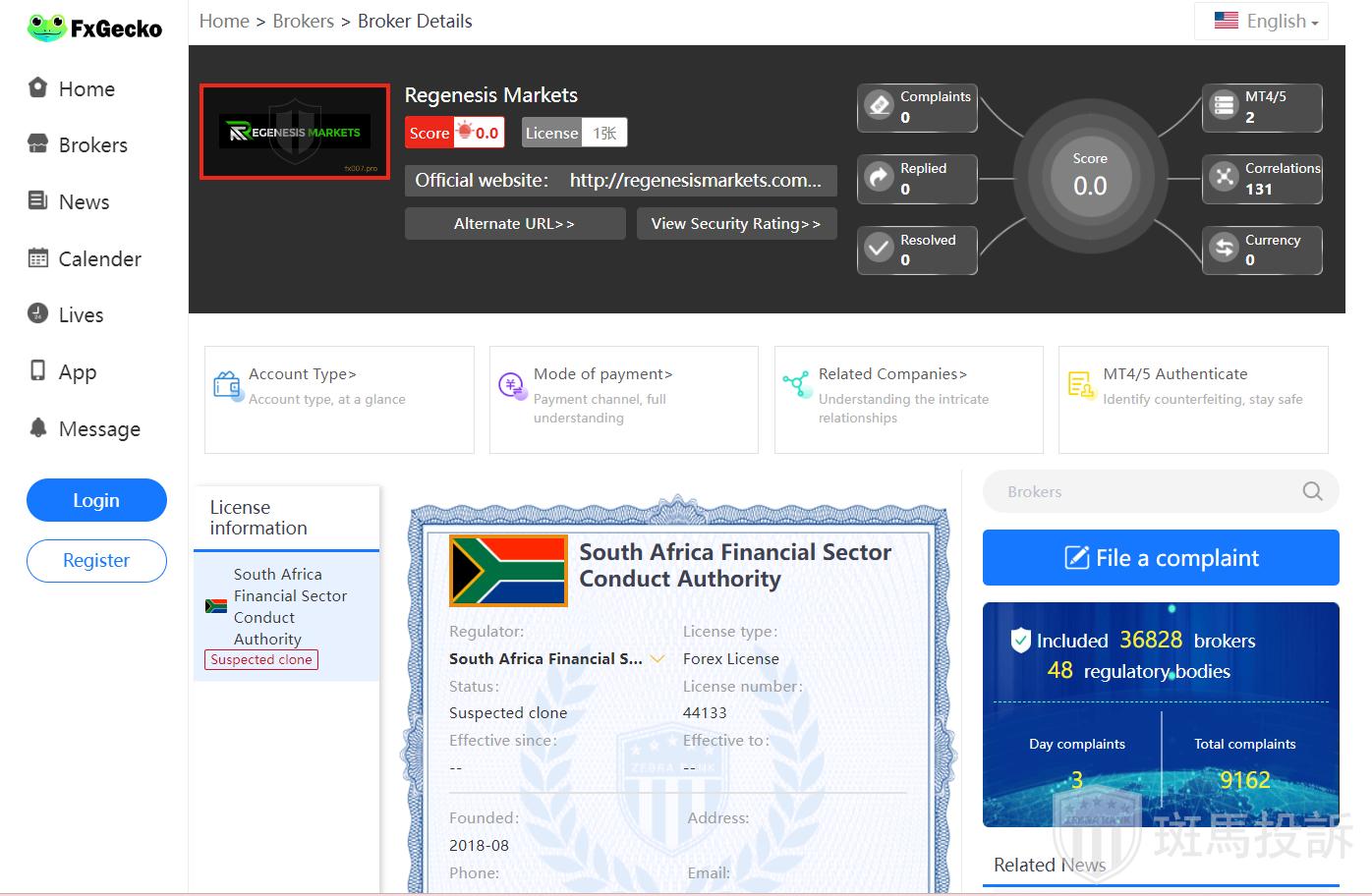 Currently, no valid regulatory information has been found for Regenesis Markets, which is a high risk sign, beware!