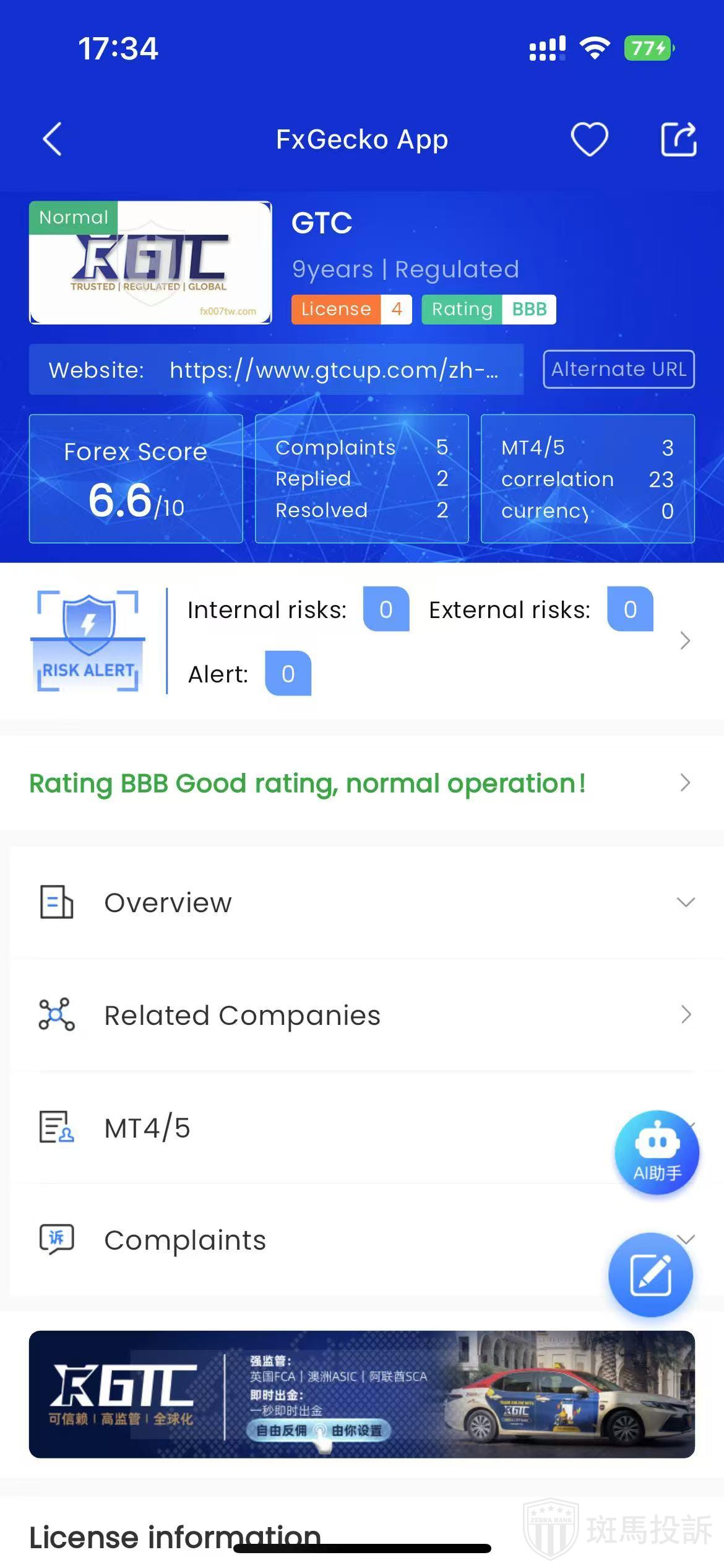According to FTI's inquiry, the platform named GTC was established in 2016 and currently ranks 11th globally with a safety score of 90 points. The platform holds regulatory licenses from four countries.