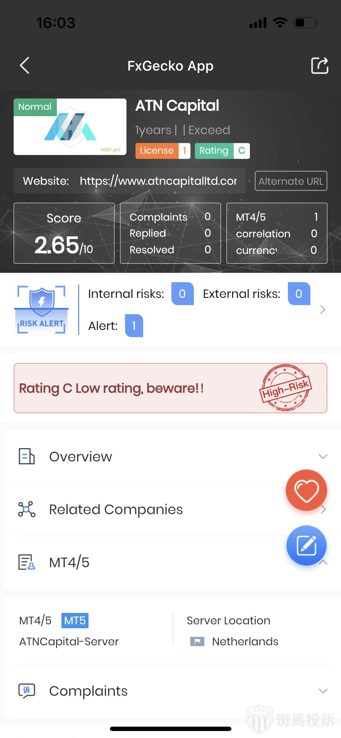 FTI risk warning shows that ATN Capital has 1 risks. Investors need to pay attention to the relevant risk alerts for this broker.