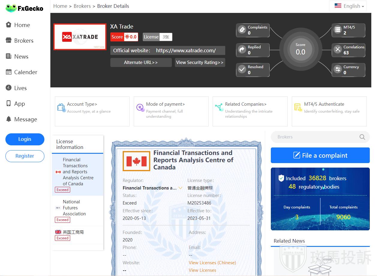 XA Trade platform is regulated by Canada FINTRAC, regulatory certificate number is M20253486, to obtain a general financial license; regulated by the U.S. NFA, regulatory certificate number is 0530293; also registered in the United Kingdom Trade and Industry Bureau, registration number is 12567565, all three belong to the category of ultra-limited operations.