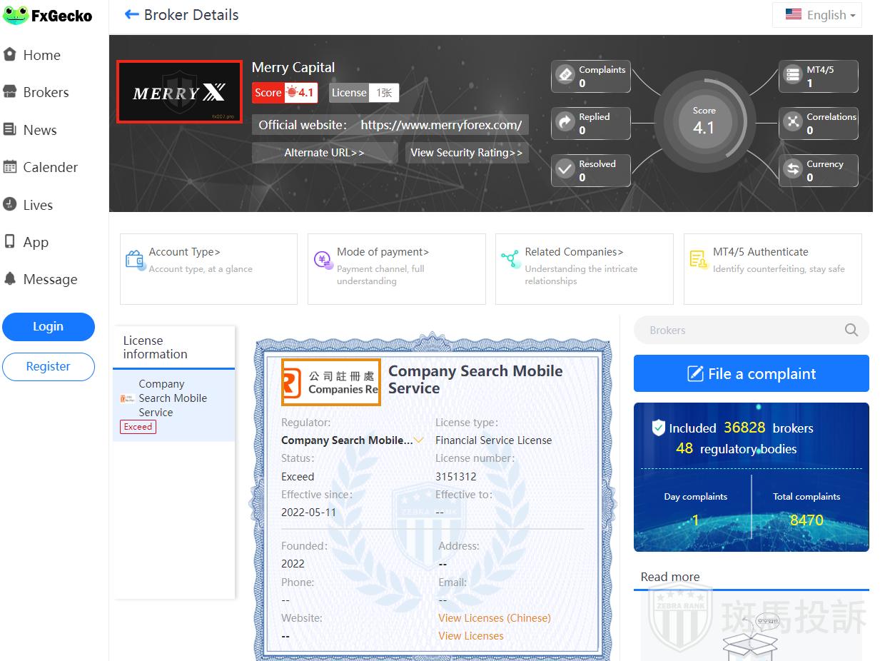 Currently, no valid regulatory information has been found for Merry Capital, which is a high risk sign, beware!
