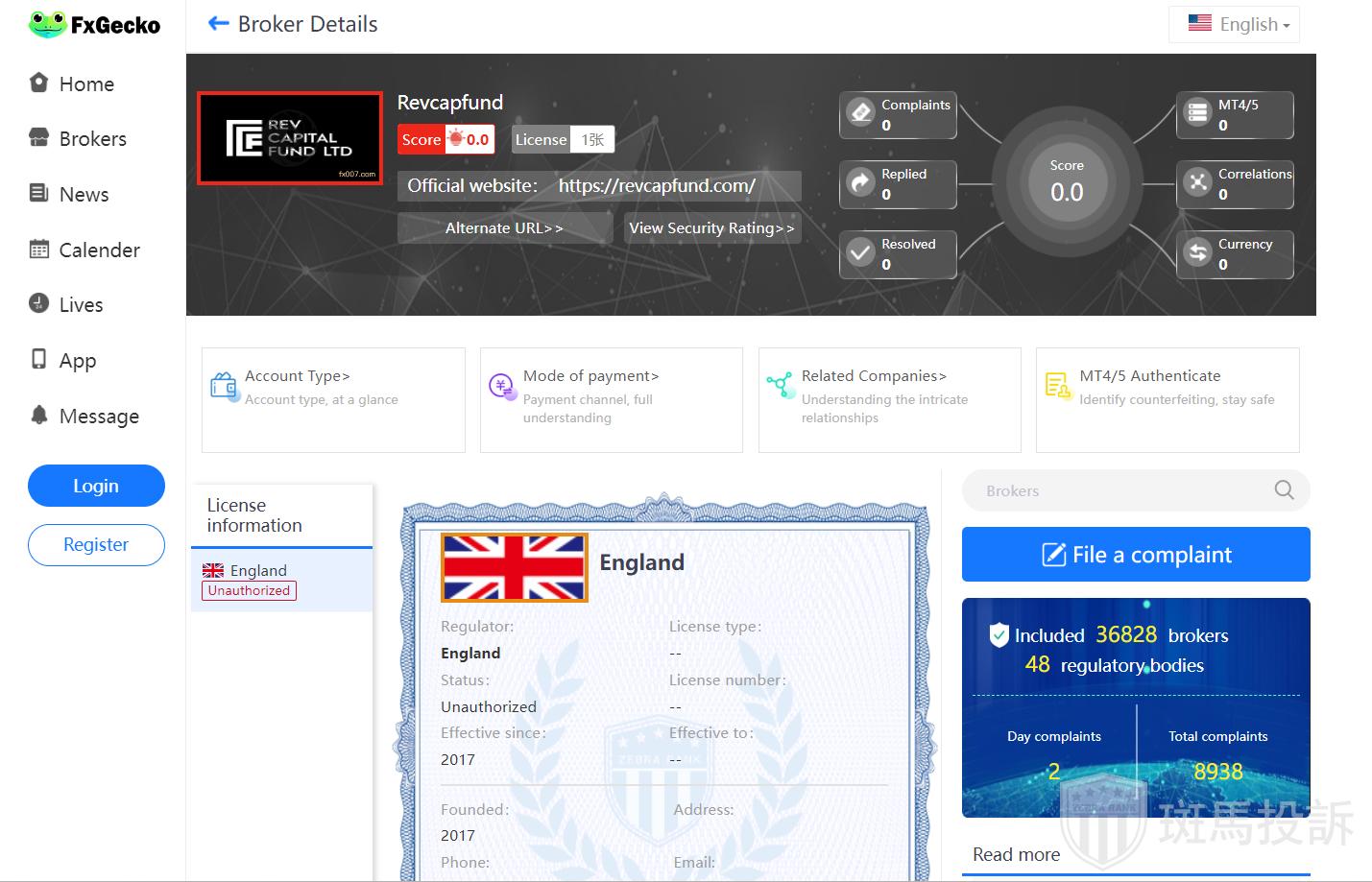Currently, no valid regulatory information has been found for Revcapfund, which is a high risk sign, beware!