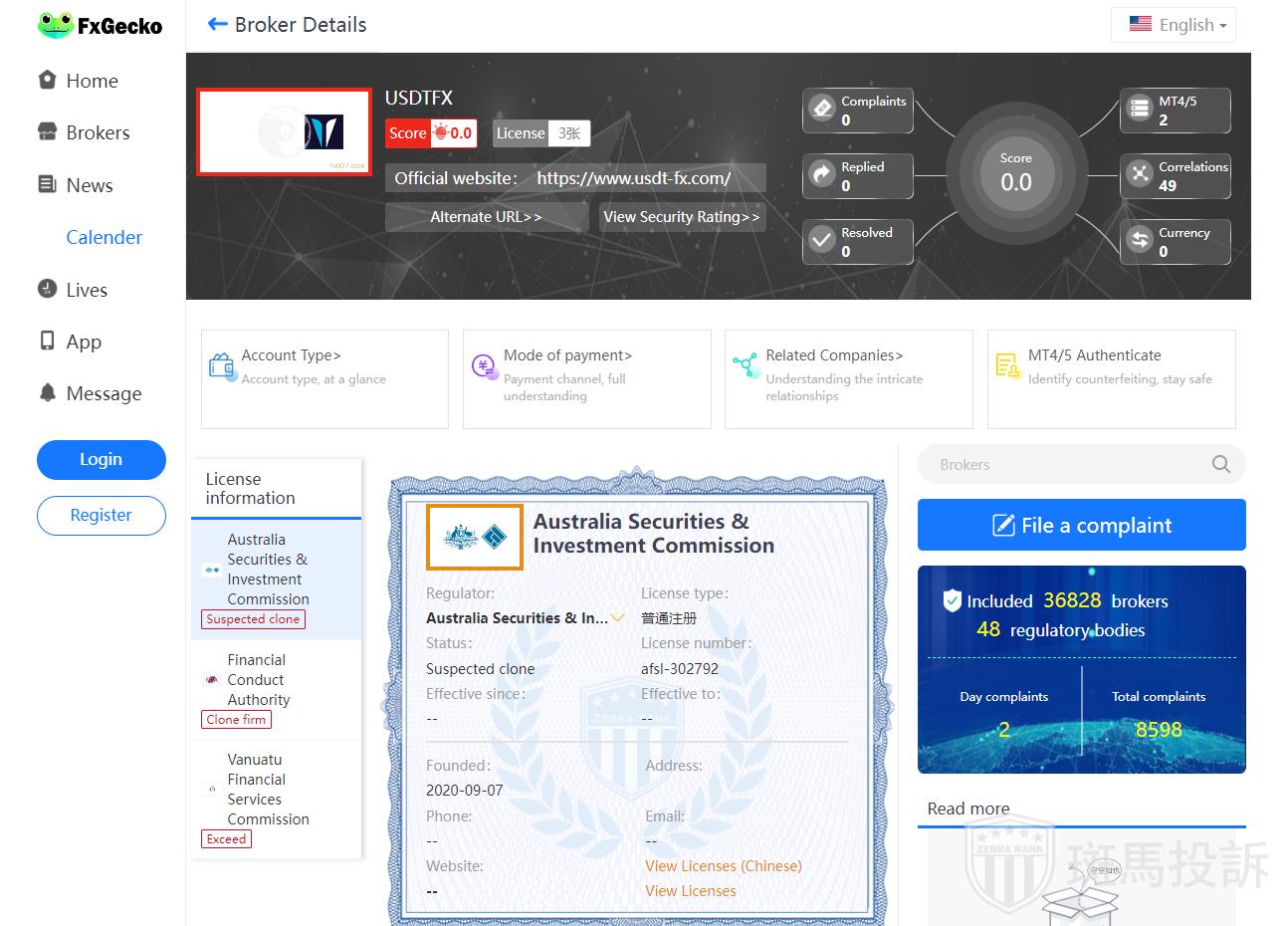 USDTFX platform is regulated by the Vanuatu VFSC, regulatory certificate number 41706, to obtain a general financial license, which belongs to the category of over-limit operation; it is also confirmed that the regulation of the FCA in the United Kingdom is set, and the regulation of the ASIC in Australia is the state of suspected set.