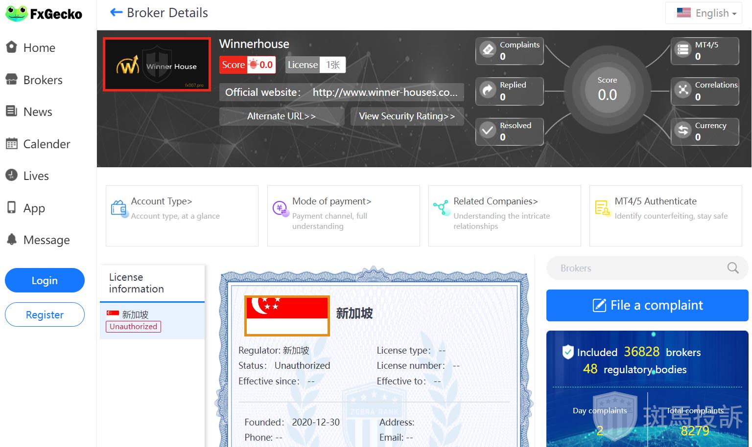 The master white label relationship shows that Winnerhouse has 0 associated brokers. We need to pay attention to whether the associated brokers are running away. This is the business risk of the brokers and the past business history, which can be used as an important reference condition for selecting brokers. The broker relationship data comes from the data of MetaQuotes.