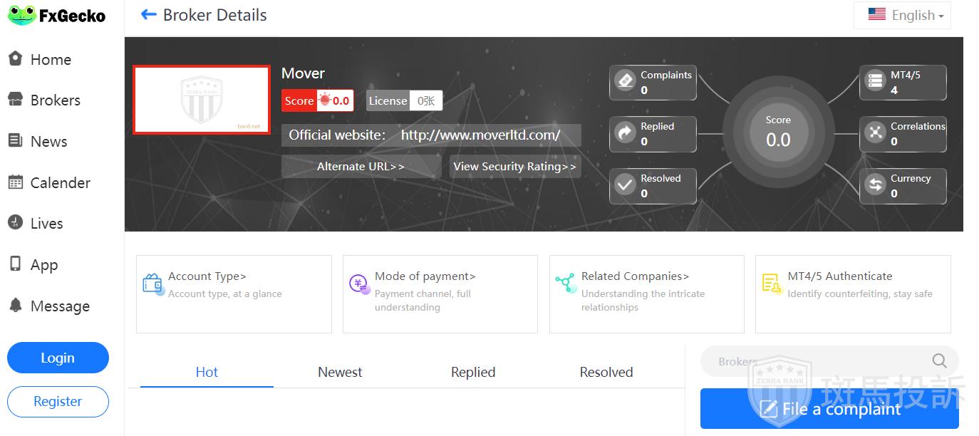 Currently, no valid regulatory information has been found for Mover, which is a high risk sign, beware!