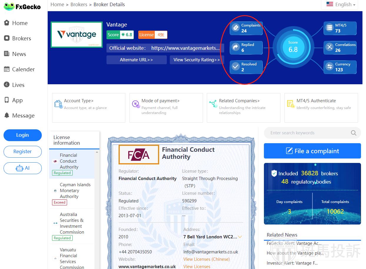 FTI data indicates that Vantage currently has 26 complaints, with only6responded to and 2 resolved, so investors should be cautious about potential risks.