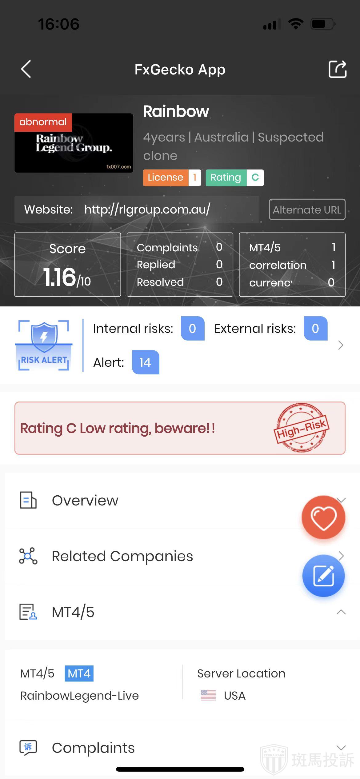 FTI risk warning shows that Rainbow has 14 risks. Investors need to pay attention to the relevant risk alerts for this broker.