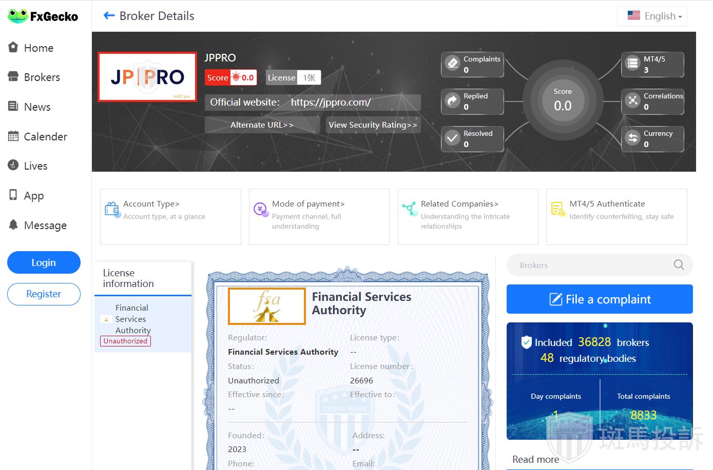 Currently, no valid regulatory information has been found for JPPRO, which is a high risk sign, beware!