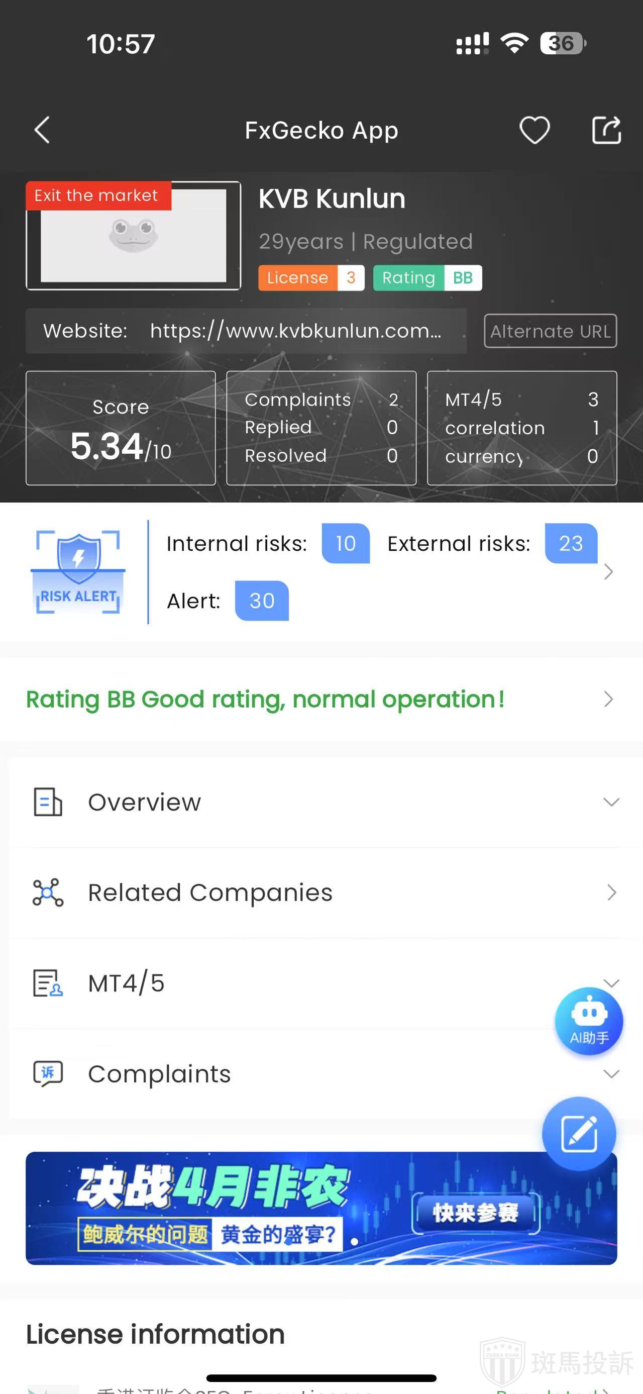 Haitou Rank Comprehensive Review: Considering establishment date, regulation, and white-label relationships, KVB Kunlun is commendable. However, if you are a Chinese investor and someone strongly recommends KVB Kunlun, proceed with caution. Industry insiders know that as early as 2019, KVB Kunlun announced it would no longer provide forex trading services or accept new account openings from residents of China. Until now, KVB Kunlun has withdrawn from the Chinese market for several years, but during this period, counterfeit KVB Kunlun platforms have been emerging continuously. Be vigilant in distinguishing genuine from fake, avoid easily believing others, and invest cautiously!