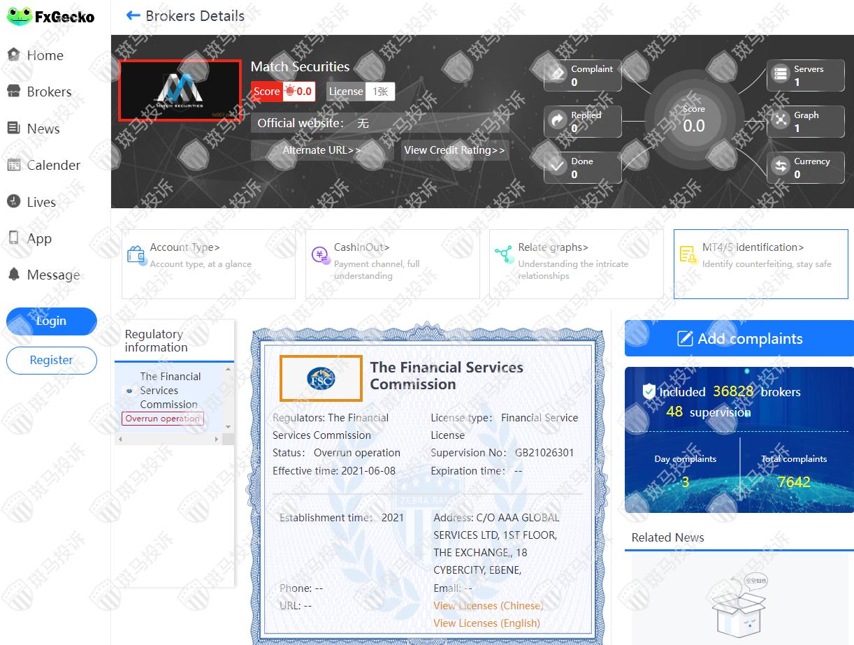 This broker is called Match Securities, which has been established for one year and ranks 1647 in the world. At present, there are 1 foreign exchange licenses, and the risk scan shows 2 risks. Investors need to pay attention to relevant risks.